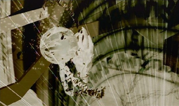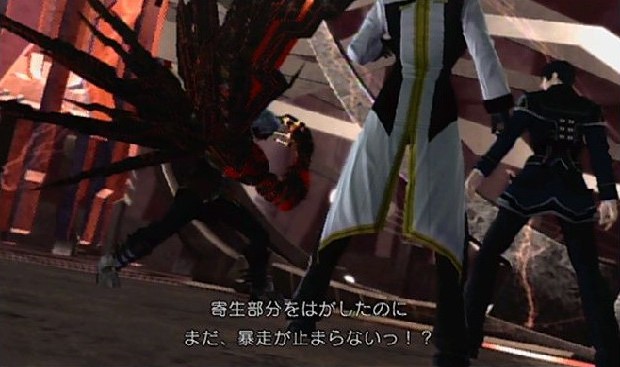 動かなくなったQOIを右腕で吸収しようとするアツマ